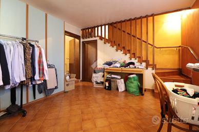 Tramite la scala interna, si giunge al piano inferiore avente una stanza utilizzata a scopo lavanderia/stireria, un bagno con doccia, una taverna in cui poter condividere momenti di serenità e convivialità ed un ampio garage che aggiunge praticità e comfort.