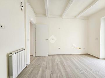Salendo al primo piano ci accoglie la zona notte, composta da due ampie camere matrimoniali, ciascuna dotata di un bagno interno. Un ulteriore elemento aggiuntivo di questa proprietà è la presenza di una soffitta, accessibile tramite una botola con scala retraibile. Questo spazio, flessibile e funzionale, si presta a diverse utilizzi: da ripostiglio a tranquilla zona studio, adattandosi perfettamente alle necessità di ogni famiglia. Questa casa di corte rappresenta una rara opportunità per coloro che desiderano vivere in un contesto esclusivo senza rinunciare alle comodità moderne.