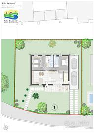 La villa si sviluppa tutta su di un piano al piano terra e così composta ingresso con ampio soggiorno e cucina open-space, ampio porticato esterno.