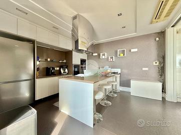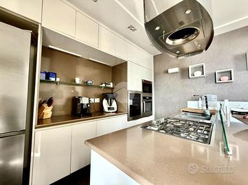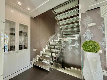 Tecnorete Pozzuoli propone in vendita una splendida villa con piscina situata in Via San Gennaro Agnano. L'immobile, di circa 250 mq interni calpestabili, si sviluppa su tre livelli collegati internamente da una moderna scala in vetro. L'ingresso principale si apre su un elegante salone doppio con camino, la cucina a vista è perfettamente integrata nell'ambiente, due balconi, oltre a una finestra panoramica con affaccio diretto sul Golfo di Pozzuoli, completano il piano un comodo bagno di servizio, un ripostiglio. La zona notte, al piano superiore, è composta da tre camere da letto ben disimpegnate e due bagni, di cui uno en suite. Ogni ambiente gode di affacci esterni: balconi e finestre panoramiche che offrono scorci suggestivi sul paesaggio circostante, rendendo ogni stanza accogliente e luminosa. Il livello inferiore, anch'esso raggiungibile dalla scala interna, ospita due ulteriori camere, ideali come spazi per ospiti, studio o sala hobby. Presenti anche una lavanderia attrezzata, due bagni e un terrazzino. Il vero punto di forza della villa è lo spazio esterno, concepito per offrire il massimo comfort e privacy. Una piscina privata con ampio solarium invita a godersi il sole e le giornate estive in totale relax. Accanto, una dependance indipendente, dotata di cucina e bagno, è perfetta per pranzi all'aperto o per organizzare feste private. Completa la proprietà un lastrico solare di circa 85 mq, ideale per l'installazione di un impianto fotovoltaico, garantendo un'opportunità concreta di efficienza energetica e risparmio. Nonostante la tranquillità del contesto, la villa è ottimamente collegata: si trova a pochi minuti dal centro di Pozzuoli, dai principali servizi e dallo svincolo della Tangenziale di Agnano, rendendo agevoli gli spostamenti verso Napoli e le zone limitrofe. Una residenza esclusiva, perfetta per chi cerca privacy, comfort e bellezza in un'unica soluzione abitativa, immersa nel cuore dei Campi Flegrei.