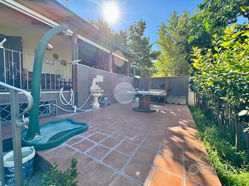 All'esterno, la casa si estende in un giardino curato, ideale per trascorrere momenti all'aria aperta, circondati dal verde e dalla serenità. L'ampio portico invita a vivere gli spazi esterni in ogni stagione, mentre l'area parcheggio e l'ampio garage completano una soluzione che unisce praticità e stile.