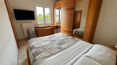 Al primo piano si sviluppa la zona notte, composta da tre camere da letto, due delle quali con accesso diretto a un ampio terrazzo a livello con vista; Questo spazio esterno rappresenta un vero e proprio sfogo panoramico, ideale per godersi momenti di relax all'aria aperta in totale privacy. Completa il piano il secondo bagno della residenza.