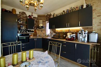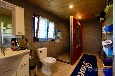 Al piano terra completano la proprietà un'autorimessa, due cantine, un gazebo, una stanza completamente arredata con accesso dall'esterno, un bagno con doppi servizi e box doccia con doppio accesso (interno ed esterno), una piscina ed un lotto agricolo di 4600 mq.