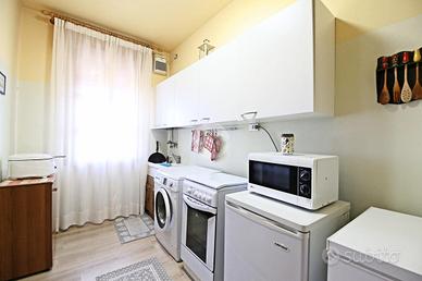 Tramite un disimpegno si raggiunge il secondo appartamento dove veniamo accolti dalla zona living con angolo cottura. Due camere da letto ed un bagno completano il piano. Nel 2015 sono stati sostituti gli infissi.