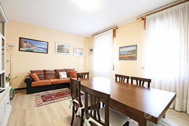 Accedendo all'immobile al primo piano, troviamo il primo appartamento composto dal soggiorno con cucina separata abitabile e da tre camere da letto di cui due matrimoniali servite da un terrazzo. Nel 2022 sono stati eseguiti i seguenti lavori: sostituzione infissi, sostituzione caldaia e rifacimento dell'impianto termico.