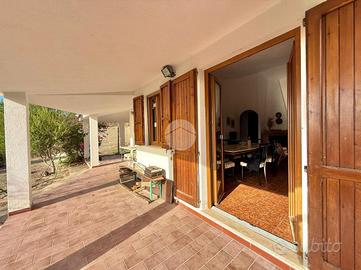L'immobile è stato concepito su un unico livello e dispone esternamente (su due lati) di un profondo loggiato che ripara e protegge l'ingresso e la zona giorno. Al suo interno trovano sistemazione un ampio soggiorno con camino, una spaziosa cucina abitabile, tre camere da letto e due bagni.
