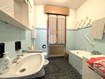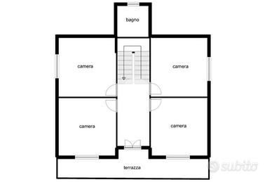 Al piano ammezzato si trova il primo bagno, finestrato e dotato di vasca.