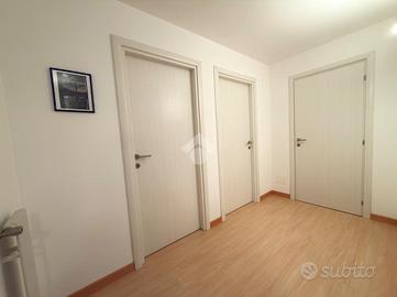 Al secondo piano troviamo un altro appartamento in cui è presente una cucina con openspace, una camera matrimoniale e due singole, due bagni, in uno di questi è presente la sauna e idromassaggio.