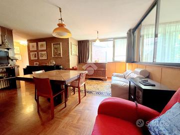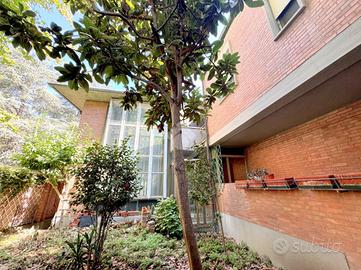 Importante sottolineare la presenza nella zona pranzo di ampie vetrate che affacciano sul giardino privato interno, e che portano quindi molta luminosità agli ambienti.