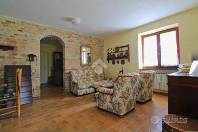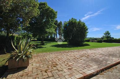 La proprietà si distingue per una spaziosa corte esterna, ideale per momenti di relax e convivialità, impreziosita da un angolo barbecue perfetto per cene all'aperto. L'ampio portico invita ad entrare in una luminosa zona soggiorno-pranzo, dove lo spazio e la luce naturale creano un ambiente accogliente e raffinato. La grande cucina in muratura, con accesso a un ulteriore porticato, è il luogo ideale per gli appassionati di gastronomia che desiderano cucinare in un ambiente funzionale e ben progettato. Un piccolo bagno finestrato al piano terra aggiunge praticità e comfort.