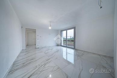 La composizione prevede al Piano Terra ampia autorimessa di quasi 50 mq (rifinita in ogni sua parte come l'abitazione) locale multiuso con porta finestra sul giardino e lavanderia-locale impianti; al Piano Primo soggiorno a doppio volume con ampia finestratura sul verde, cucina abitabile, camera da letto matrimoniale e bagno; al Piano Secondo due camere da letto matrimoniali di cui una con cabina armadio e bagno.