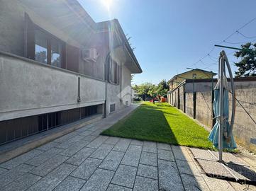 La spaziosa villa si estende su un terreno di 1200 mq. E' ubicata in una zona che unisce comodità e tranquillità; in meno di 10 minuti a piedi si possono raggiungere la stazione Trenord, la fermata dell'autobus e un minimarket.