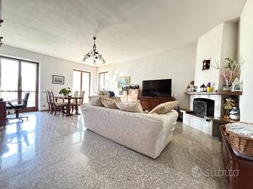 Gli interni sono stati progettati per garantire il massimo comfort e funzionalità, rendendo ogni stanza perfetta per la vita quotidiana. Il doppio soggiorno, con il suo camino, diventa il cuore della casa, ideale per serate rilassanti in famiglia o per ospitare amici in un ambiente caldo e invitante. La spaziosa cucina abitabile permette di cucinare con facilità e di condividere momenti di convivialità intorno al tavolo. Il bagno, che completa la zona giorno, è dotato di finestra e doccia. La zona notte offre tre camere da letto spaziose e rifinite in parquet, di cui due dotate di balcone, oltre a un bagno con finestra e vasca.