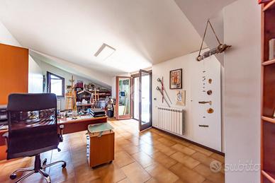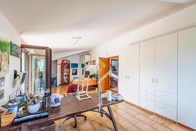 Il piano terra ospita due ampie camere matrimoniali e due bagni moderni, mentre al piano superiore, accessibile anche da un ingresso indipendente, si sviluppa una superficie di circa 100 mq attualmente adibita a locali hobby, lavanderia e bagno, con predisposizione per una cucina: perfetta per creare un secondo appartamento indipendente.
