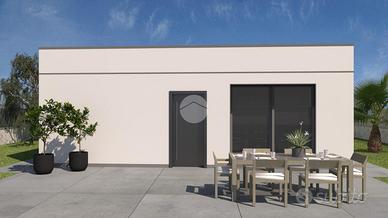 Villa unifamiliare-Piano unico-Zona giorno open space-Cucina a vista-Tre camere da letto-Bagno finestrato-Possibilità secondo bagno/lavanderia. Giardino-Pergolato per auto su richiesta.