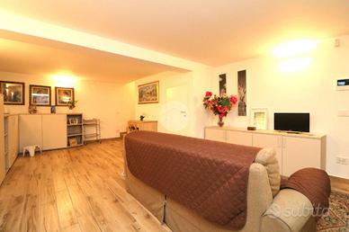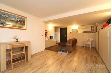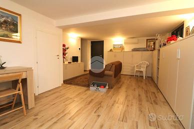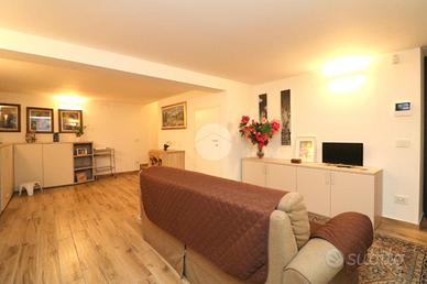 Una comoda scala in muratura porta alla taverna, da cui si accede direttamente ad un ampio box auto, che può ospitare fino a tre automobili dove è stato installato un punto di ricarica per auto elettriche; insomma una soluzione pratica e moderna.