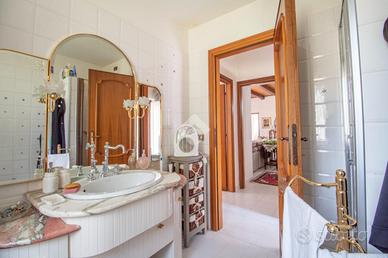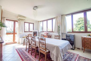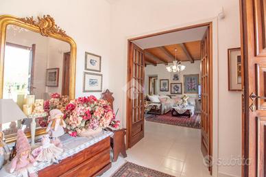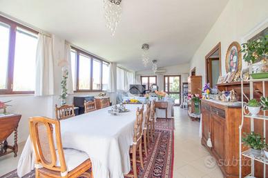 Immersa nella suggestiva pianura di Rieti, a pochi minuti dal centro storico, questa splendida villa indipendente rappresenta un perfetto equilibrio tra eleganza, comfort e natura. Una dimora pensata per chi desidera vivere in un contesto riservato, senza rinunciare alla comodità dei servizi e alla vicinanza alla città.La proprietà, di circa 360 mq, è circondata da un giardino completamente pianeggiante di 5.800 mq, un vero angolo di pace dove il verde è protagonista. Alberi ornamentali e da frutto, fontanelle decorative perfettamente funzionanti e un pozzo arricchiscono lo spazio esterno. L'accesso alla villa avviene tramite doppio cancello elettrico, pedonale e carrabile, che conduce lungo un elegante viale mattonato fino all'abitazione, creando fin dal primo sguardo una piacevole sensazione di cura ed esclusività. Gli interni si distinguono per ampiezza, luminosità e una distribuzione degli spazi estremamente armoniosa. Al piano terra, l'ingresso introduce nella zona giorno composta da tre distinti saloni. Sulla destra si apre un grande salone principale, ideale per accogliere e vivere momenti conviviali, dal quale si accede direttamente a uno splendido salone verandato, chiuso e caratterizzato da una straordinaria luminosità. Sulla sinistra dell'ingresso si trova un terzo salone, più raccolto e accogliente, impreziosito da una scala in legno a vista che conduce con eleganza alla zona notte. La cucina in muratura si integra perfettamente con gli ambienti living e comunica con il salone verandato, creando una continuità ideale per la vita quotidiana e per momenti di convivialità. Completa il piano terra una comoda camera matrimoniale e un bagno. Salendo al piano superiore si sviluppa la zona notte, composta da una cameretta, due ampie camere matrimoniali e due bagni. Al secondo piano, una suggestiva stanza con camino ideale come studio, zona lettura o spazio creativo, dove il tempo sembra rallentare. La villa è abitabile da subito e si presenta in ottime condi