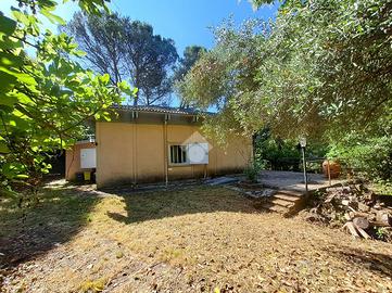 Esternamente, lo chalet offre un portico coperto e una corte pavimentata, perfetti per momenti di relax all'aperto. Il giardino, completamente recintato, si estende su una superficie di circa 3.000 mq, impreziosito da alberi secolari, alberi da frutto, piante ornamentali e cespugli fioriti; un paesaggio in continua evoluzione, che offre profumi, colori e suggestioni diverse ad ogni stagione.