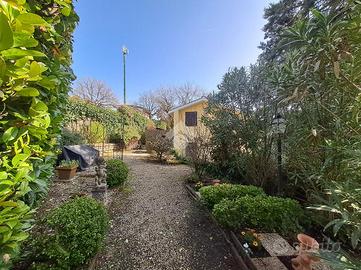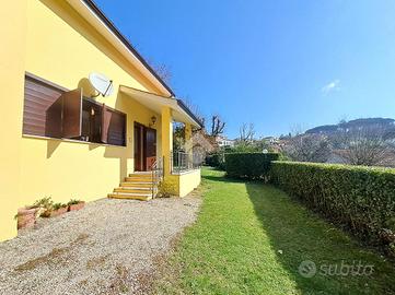 In una tranquilla e riservata zona residenziale di Montelarco, proponiamo una villa indipendente immersa nel verde, una proprietà dal fascino unico per chi desidera vivere circondato dalla natura, tra campagna, bosco e giardini curati, senza rinunciare alla comodità degli spazi e alla privacy. La proprietà realizzata a fine anni 70 su un lotto di circa 1400 mq, gode di assoluta riservatezza ed è inserita in un piacevole contesto di campagna, dove il silenzio e il paesaggio naturale diventano parte della vita quotidiana. Uno dei punti di forza della villa è rappresentato dagli spazi esterni, che rendono questa abitazione davvero speciale. A livello della casa si sviluppa un ampio giardino pianeggiante e facilmente fruibile, ideale per vivere l'esterno in totale comodità: perfetto per pranzi all'aperto, momenti di relax o per accogliere famiglia e amici. Scendendo nella proprietà si apre un secondo giardino sapientemente progettato su più livelli, che crea ambienti verdi distinti e suggestivi. Qui la natura è valorizzata da piante ornamentali, fiori, alberi ad alto fusto, oltre a elementi decorativi come statue e una caratteristica fontana, che donano all'insieme un'atmosfera elegante e rilassante. Gli spazi sono perfetti anche per realizzare una zona relax o un piccolo orto. L'accesso alla villa è particolarmente funzionale grazie alla presenza di due ingressi carrabili e di un ingresso pedonale, che garantiscono comodità e indipendenza negli accessi. Internamente l'abitazione si sviluppa su due livelli per una metratura complessiva di circa 120 mq commerciali, di cui 85 mq circa la zona abitativa: al piano terra troviamo una luminosa zona giorno con cucina a vista, un bagno e un ambiente polivalente, ideale come studio, sala hobby o camera per ospiti; salendo al piano superiore si accede alla zona notte, composta da due camere da letto e un secondo bagno. Gli interni sono impreziositi da calde rifiniture in legno, che contribuiscono a creare un'atmosfera acc
