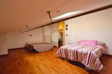 Al piano superiore, la zona notte è composta da tre camere da letto luminose e accoglienti, due delle quali dotate di balcone, da cui godere di un piacevole panorama che abbraccia il paesaggio circostante, oltre a un bagno ben rifinito, a servizio del piano.