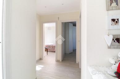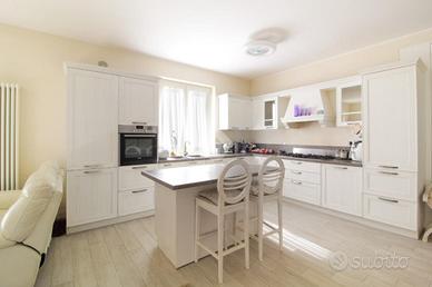 Al primo piano, un ampio soggiorno e una cucina abitabile si aprono su un comodo terrazzo, mentre la zona notte comprende due camere matrimoniali, una cameretta, uno studio e due bagni finestrati, completati da tre balconi che arricchiscono ulteriormente la proprietà.