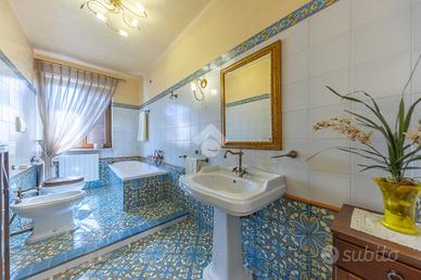 A Ripi, in località Meringo Alto, proponiamo in vendita una meravigliosa villa che coniuga comfort moderno, eleganza architettonica e un contesto naturale di grande fascino. L'immobile, costruito nel 2004, si sviluppa su quattro livelli ed è completamente recintato, offrendo privacy assoluta. Varcata la soglia, si viene accolti da un ampio salone con camino che fa da cuore pulsante alla zona giorno, rifinito con parquet di pregio che accompagna lo sguardo verso la cucina, funzionale e conviviale. La zona notte comprende una camera matrimoniale, una camera armadio/spogliatoio e uno studio riservato, oltre a due bagni, uno dei quali impreziosito dalle raffinate ceramiche artigianali di Vietri e l'altro in mosaico Bisazza. Al primo piano si apre un ambiente sorprendente: una sala cinema privata con angolo cottura e spazi accoglienti per serate all'insegna del relax e dell'intrattenimento. Completano il piano due camere da letto, un bagno e due sottotetti. l piano S1 troviamo un appartamento indipendente rifinito in cotto completo di cucina, salone con camino, palestra, camera ospiti, lavanderia e due bagni. Il livello S2 include garage doppio, ulteriore lavanderia, bagno e locale tecnico. Ogni ambiente interno è stato progettato per offrire il massimo della tecnologia e del comfort: riscaldamento con due caldaie Cosmogas in acciaio, sistema di ricircolo energetico per l'efficienza termica, gestione della temperatura stanza per stanza con app Honeywell, aria condizionata Daikin con controllo da smartphone, impianto di addolcimento acqua Culligan, autoclave con pompa inverter e impianto d'allarme Bentel con pannelli touch e gestione remota. Il videocitofono Urmet consente di rispondere da remoto a ogni chiamata. Questa villa non è solo una casa, ma un vero rifugio, un luogo dove vivere ogni giorno con stile, sicurezza e totale armonia con la natura. Il fiore all'occhiello di questa proprietà è l'area esterna: un giardino arricchito da piante mediterranee pregiate come...