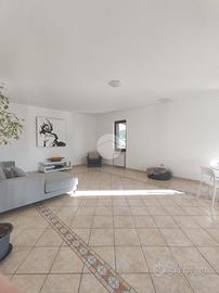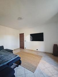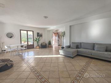 Un porticato (28 mq) ci protegge prima di entrare in casa. Varcato il portone d'ingresso ci troviamo un disimpegno che conduce a destra alla sala principale dell'abitazione, dotata di due ampie finestre che affacciano sul giardino retrostante ed una porta finestre che ci concede l'accesso al porticato. Sul lato opposto rispetto al salone, troviamo una cucina di buona metratura ed una stanza che potrebbe essere adibita come studio o sala hobby. A questo livello disponiamo di un bagno dotato di doccia.