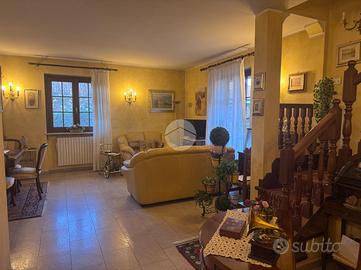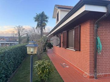 Sempre sul piano principale trovano posto la camera matrimoniale, uno studio e un bagno finestrato, recentemente rinnovato e completo di doccia. Una elegante scala in legno iroko giapponese conduce al piano superiore, dove si sviluppano altre due camere da letto e un secondo bagno, anch'esso finestrato e dotato di doccia. Scendendo al piano interrato si accede alla taverna, alla lavanderia, a un ulteriore bagno, al locale tecnico, alla cantina e al box auto, ampio abbastanza da ospitare fino a tre vetture. A completare il livello inferiore è presente anche un'intercapedine che circonda l'intero piano, garantendo maggiore isolamento e protezione dall'umidità. Se cerchi spazio, privacy e armonia, questa è la soluzione che fa per te: contattaci ora.