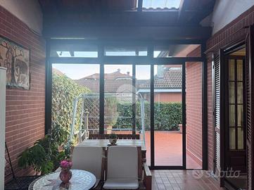Nel Villaggio San Vittore, all'interno di una tranquilla via privata, proponiamo una villa indipendente già sviluppata su un comodo piano principale di 90 mq calpestabili, oltre al piano superiore e al piano interrato. L'ingresso conduce direttamente in un soggiorno ampio e luminoso, ideale per la zona living e la sala da pranzo. Dal disimpegno si accede alla cucina abitabile, che si apre sul patio verandato, uno spazio sfruttabile tutto l'anno e collegato al piacevole giardino esterno, curato, piantumato e in parte piastrellato.