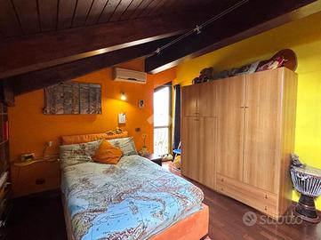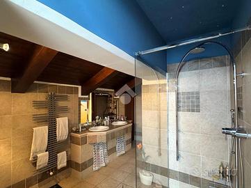Una comoda scala interna accompagna al piano mansardato abitabile, impreziosito da travi a vista. Un pratico disimpegno distribuisce gli ambienti notte: camera matrimoniale con cabina armadio, due camere di generose dimensioni, di cui una con balcone alla francese, e bagno con doccia walk-in con illuminazione LED e balcone alla francese. Il piano è dotato di riscaldamento a pavimento.