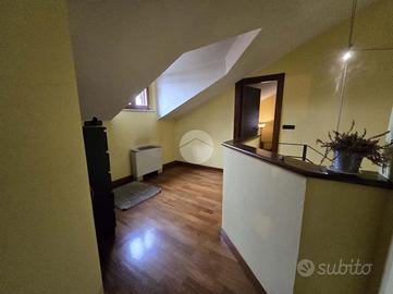 Attraverso una comoda scala interna si accede al piano sottotetto, dedicato alla zona notte, dove si trovano due camere da letto, di cui una con cabina armadio, e un secondo bagno.