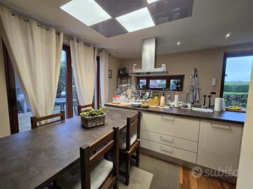 A Rivarossa, all'interno di un elegante contesto residenziale caratterizzato da sole ville, proponiamo una villa unifamiliare rifinita in paramano che unisce spazi generosi e comfort moderni.