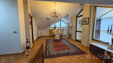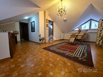 Alle porte della zona di Bruere, nel comune di Rivoli, si trova una villa singola che offre un'opportunità unica di vivere in un ambiente elegante, rifinito e ristrutturato con materiali di qualità. Libera sui quattro lati, questa residenza si sviluppa su tre livelli abitativi, garantendo ampi spazi e comfort. Con una superficie di 226 mq interna ed un giardino di 250 mq, curato a prato all'inglese e con varie parti pavimentati e sfruttabili, circonda la proprietà, creando un'oasi di tranquillità. La posizione privilegiata assicura privacy e comodità, siamo a pochi km dal centro di Rivoli, dalla tangenziale, dai servizi principali e dalla futura stazione metropolitana in arrivo su Rivoli. Presente un sistema di allarme volumetrico e perimetrale con telecamere in ogni ambiente esterno dell'immobile garantendo totale sicurezza. Edificata nel 1962 e sopraelevata nel 1992 questa residenza rappresenta una perfetta fusione di stile classico e comfort contemporaneo, la facciata ed il tetto sono in ottime condizioni e non presentano lavori da eseguire. La soluzione si sviluppa su tre livelli abitativi, al piano abbiamo un'ampia zona open space, una camera matrimoniale, un bagno padronale ed una cucina abitabile. Il tutto impreziosito dalla presenza di un terrazzo adiacente con vista panoramica sul verde. Gli infissi e la parte serramentistica sono stati tutti rivisti a nuovo e grazie alla loro ampiezza regalano luminosità e viste di un certo spessore. Proseguendo vi è l'ambiente sottotetto, volevo accessibile privatamente, che comprende una zona living con cucina, una camera ed un bagno finestrato, ed un ulteriore terrazzo verandato. Entrambi i piani hanno la loro caldaia autonoma, vi è inoltre presente anche una comoda stufa a pellet al piano abitativo. La taverna riprende il metraggio dei piani superiori e presenta una zona open space molto ampia, un ambiente studio ed una comoda lavanderia oltre ad un terzo servizio finestrato. Il box auto triplo rimane collegato alla...