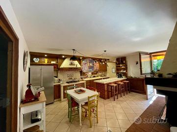 La soluzione è composta al piano terra da caratteristica cucina con un magnifico camino in muratura, un ampio e luminoso soggiorno open-space, uno spazioso bagno ed infine una camera da letto matrimoniale. Al piano primo troviamo tre camere da letto, di cui una con accesso diretto al grande terrazzo ed al giardino ed un bagno finestrato.