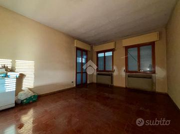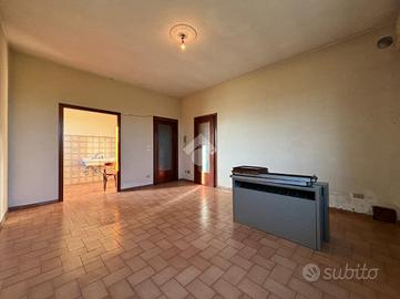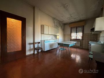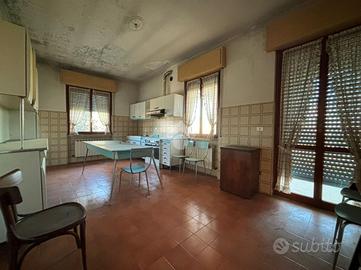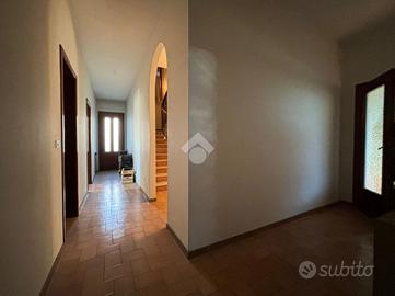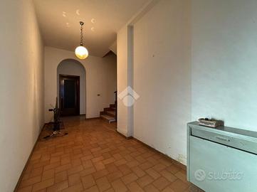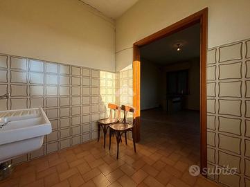 Tramite la scala interna si accede al piano primo, di 144 mq, composto da: disimpegno d'ingresso, ampia cucina abitabile, soggiorno, disimpegno, bagno, tre camere da letto, di cui una con balcone, e ripostiglio. Dalla cucina si ha accesso al terrazzo coperto di 15 mq.