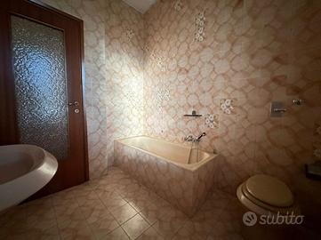 Il piano terra, di 128 mq, è composto da: ampio ingresso con vano scala, soggiorno con cucinotto, due camere da letto e bagno con vasca.