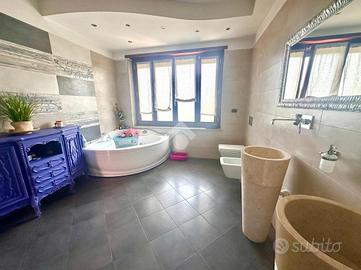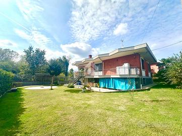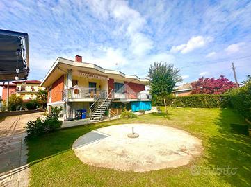 ROBASSOMERO: In zona tranquilla VILLA INDIPENDENTE TOTALMENTE RISTRUTTURATA CON GIARDINO PRIVATO DI 750 MQ. Al piano rialzato , accedendo dallo spazioso terrazzo , abbiamo ingresso living in un grande salone , sala da pranzo ed ampia cucina abitabile da cui si accede ad altro ampio terrazzo coperto con vista ed accesso direttamente nel giardino; poi abbiamo 2 camere molto grandi di cui una con cabina armadio , e bagno di 12 mq con vasca idromassaggio e box doccia ; tramite scala interna si accede al piano seminterrato ( anch'esso totalmente rifinito) , composto da disimpegno , tavernetta con camino a legna, sala tv , ampio bagno con doccia, lavanderia , locale caldaia e box auto triplo ( 44 mq) piastrellato. La casa è stata ristrutturata nel 2015 e presenta le seguenti caratteristiche:I maggiori pregi di questa abitazione oltre alle ottime finiture , sono la disposizione delle zone giorno e delle camere sullo stesso piano , e non necessità di nessun tipo di lavoro.Pavimentazione in gress.Riscaldamento a pavimento con caldaia a metano, oltre a stufa a legna e stufa a pellets.Condizionatori ( caldo/freddo).Pannelli solari per produzione energia elettrica e fornitura acqua calda.Gli infissi sono in legno con doppi vetri , le tapparelle sono tutte elettriche .Impianto di antifurto perimetrale/volumetrico e telecamere esterne.Cancello di ingresso e portellone ingresso box sono automatici.Impianto irrigazione automatica.Nel giardino è presente un gazebo fisso e basamento in cemento per piscina esterna.Tutta la recinzione è composta da metallo zincato , per cui non richiede manutenzione .