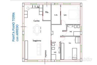 * ampio e luminoso soggiorno con angolo cottura