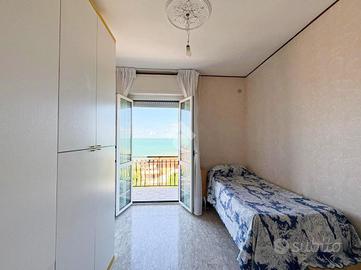 Al piano terra trovi un appartamento con ingresso indipendente e una spaziosa veranda, perfetta per pranzare o sorseggiare un aperitivo ammirando il mare. All'interno, una sala con angolo cottura, due camere da letto, uno studio, un ripostiglio e un bagno con doccia ti offrono tutto il comfort di cui hai bisogno.