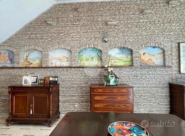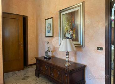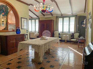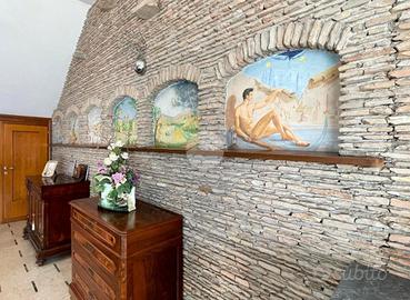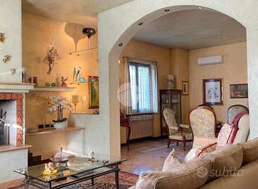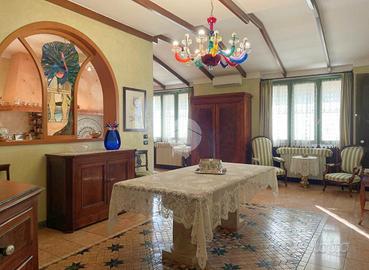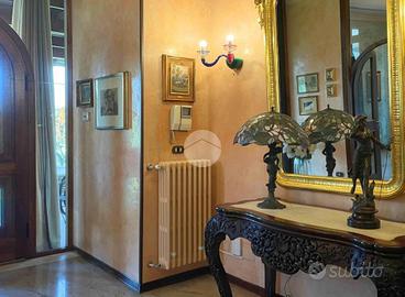 La proprietà, attualmente composta da due unità abitative si distingue per un'architettura elegante, ambienti ampi, luminosi e particolari di pregio con tanto di affreschi e finiture in pietra. Gli ampi spazi interni sono ben distribuiti e pensati per garantire il massimo comfort abitativo, con zona giorno accogliente e raffinata formata da soggiorno, sala da pranzo, cucina e un ambiente adibito a studio con balcone, zona perfetta per la vita quotidiana e per ricevere ospiti.