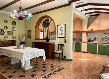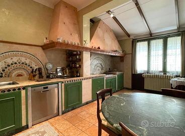 All'esterno, la villa è circondata da un giardino curato e ben piantumato di circa 1400 mq, con possibilità di creare una piscina interrata, ideale per momenti di convivialità all'aria aperta o per chi desidera uno spazio verde esclusivo. La proprietà offre inoltre comodi spazi accessori come un ulteriore cantina situata al piano interrato e posti auto, rendendola una soluzione completa e funzionale.
