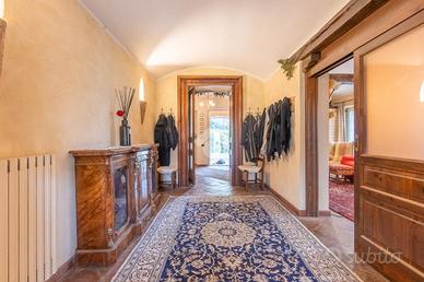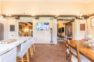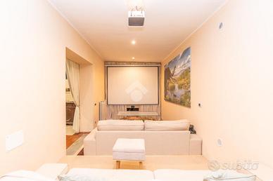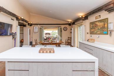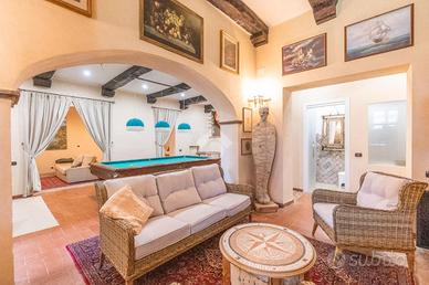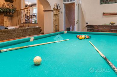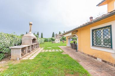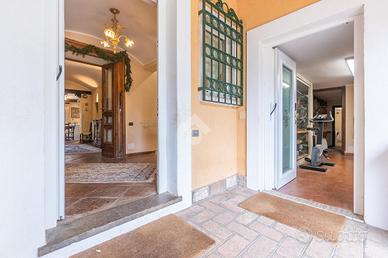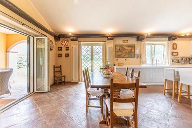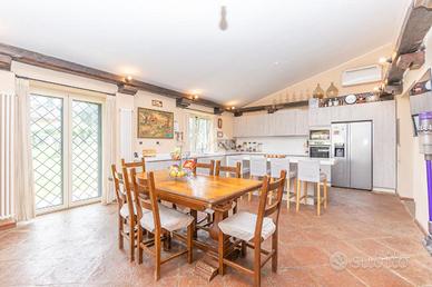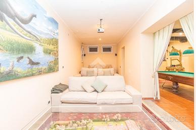 La proprietà sviluppa un giardino privato di circa 2000 mq su tutti e quattro i lati creando così riservatezza e privacy, inoltre vi è un portico che offre uno spazio perfetto per pranzi e cene; entrando al suo interno troviamo un ingresso di rappresentanza che ci conduce direttamente alla zona cucina di circa 40 mq, poco sotto si apre la vista sul grande salone completo di un camino e tavolo da biliardo, una sala cinema e un seconda sala TV. Il piano terra è completato da un bagno, un locale lavanderia, un laboratorio ed una palestra.