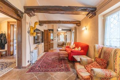 Interno alla proprietà vi è un comodo box auto di 35 mq e una corte pavimentata che ci permette di parcheggiare diverse auto.