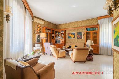 VILLA INDIPENDENTE CON GIARDINO - PRIMA PORTA / VIA SARONNO Proponiamo una villa singola con giardino, su due livelli, divisa in due appartamenti, ideale per due nuclei familiari. Il fabbricato insiste su un lotto di 1300 mq. di giardino. L'immobile è suddiviso in due appartamenti indipendenti su due livelli, più spazi accessori al piano terra: APPARTAMENTO 1 - 160 MQ.: Al piano rialzato un primo terrazzo conduce all'ingresso indipendente, grande salone, cucina spaziosa ed abitabile, un primo bagno ed uno studio. Al primo piano troviamo due grandi camere da letto con terrazzo ed un bagno. Una scala conduce al sottotetto, tale vano alto e finestrato consente la realizzazione di ulteriori due stanze ed una soffitta. APPARTAMENTO 2 - 110 MQ.: Al piano rialzato con ingresso indipendente direttamente sul soggiorno, la cucina abitabile ed un bagno di servizio. Al primo piano troviamo due ampie camere da letto con balconata ed un bagno. PIANO TERRA - SPAZI ACCESSORI: Autorimessa di 67 mq. per 2/3 auto, con servizio e cantina. Sala hobby divisa in due ambienti con camino e cucina. Ampio viale privato con possibilità di parcheggio multiplo. Condizioni generali: buone, con finiture originali anni '70 Perfetta per due famiglie che vogliono vivere vicine mantenendo la propria indipendenza. Posizionato a 1 km dalla fermata 'Giustiniana della linea ferroviaria Roma - Civita Castellana Viterbo. Info e visite anche su WhatsApp: Seguici su Facebook Instagram YouTube per video ed aggiornamenti!