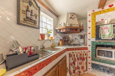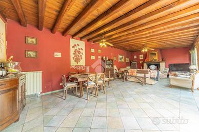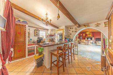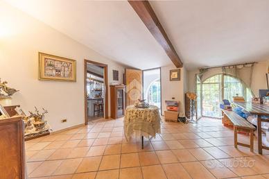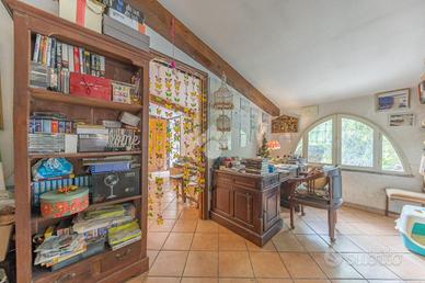 L' immobile presenta un ampio ingresso luminoso, una camera adibita a studio che affaccia sul giardino, il corridoio che conduce alla camera matrimoniale con cabina armadio e bagno interno, un secondo bagno patronale finestrato con doccia, si prosegue con il disimpegno che conduce alle altre due grandi camere luminose finestrate, da una di esse si accede a un altro corridoio che conduce alla cucina in muratura e al salone con camino dove trascorrere momenti di convivialita.