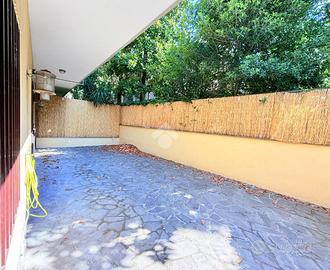 L'ingresso principale si apre su un'accogliente zona giorno composta da un soggiorno luminoso, due camere da letto, un bagno completo e comodi accessi al giardino che abbraccia l'intera proprietà, offrendo privacy e spazi ideali per momenti di relax all'aperto.