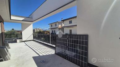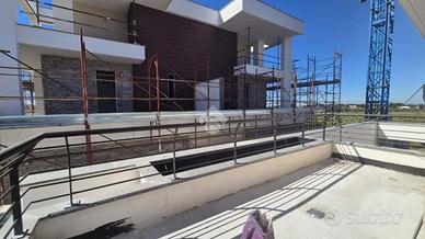All'interno del nuovo complesso residenziale 'Le Ville del Colle', a Villa Verde, adiacente a tutti i servizi di trasporto ed alle scuole, proponiamo in vendita una porzione di Villa Bifamiliare di prestigio, di nuova costruzione, in classe energetica A4, con impianti di ultima generazione e finiture moderne. La villa si sviluppa su due livelli (NON MANSARDATI) e si compone di un ampio salone, cucina separata, tre bagni finestrati, tre camere da letto, un ampio terrazzo perimetrale e un comodo portico al piano terra. Completa la proprietà un giardino privato di 130 mq circa con accesso carrabile e posto auto interno. Il residence, immerso nel verde e con vista panoramica, è completamente recintato e videosorvegliato, dotato di un viale d'accesso comune ed ampie aree di manovra, che garantiscono ordine, comfort e sicurezza. Ogni villa dispone di accesso carrabile e pedonale privato. L'abitazione è dotata di impianto fotovoltaico per la produzione di energia, serbatoi per la raccolta delle acque piovane e impianto di riscaldamento a pavimento che garantisce comfort e consumi ridotti. È inoltre prevista la predisposizione per l'impianto di raffrescamento a pavimento. Gli infissi ad alte prestazioni e la coibentazione avanzata contribuiscono a raggiungere la classe energetica A4, il massimo in termini di efficienza e sostenibilità. Una soluzione ideale per chi cerca comfort, qualità costruttiva e tecnologie moderne, in un contesto tranquillo, silenzioso, immerso nella natura e con viste impareggiabili.
