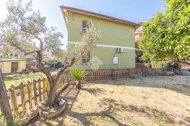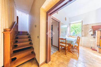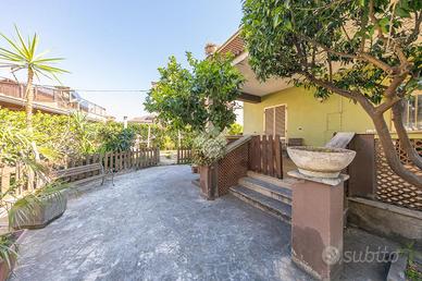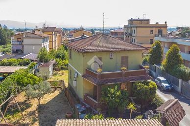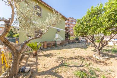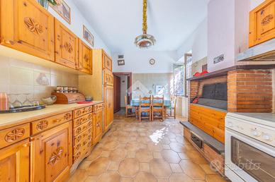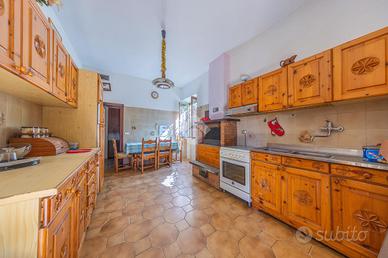 L'esterno della villa è altrettanto affascinante, con un grande giardino di 650 mq che rappresenta un vero e proprio angolo di paradiso. Questo spazio verde è perfetto per attività all'aperto, giardinaggio, o semplicemente per rilassarsi e godersi la tranquillità. Inoltre, la proprietà dispone di una cantina al piano seminterrato, ideale per riporre ogni tipo di oggetto o utensili.
