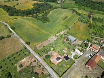 Via Perella, Villa Singola con 10 ettari di terreno. Ricadente nel XIV municipio Capitolino. Estensione di terreno cospicua per realizzare vari progetti, o magari vivere in una dimora esclusiva. A 30 km dall'aereoporto di fiumicino, a 25 km da piazza san pietro a Roma, a 20 km dal Mare e dal lago di Bracciano, 10 km dalla via Aurelia zona Aranova, in località Testa di Lepre ed adiacente a Tragliata, Monte del Fico e via boccea. La villa si può adibire a diversi utilizzi abitativi vista la sua divisione e ampiezza degli ambienti interni ed esterni. Ottima per agriturismo, casa di riposo, circolo golf o abitazione principale di rappresentanza. Unica nel suo genere per gli spazi dei vani principali grandi e luminosi. E' cosi composta:Terrazzo, Zona porticata dove si accede ad un ampio disimpegno, salone triplo con cucina in muratura, due camere matrimoniali ed un bagno il tutto al piano terra; una scala in legno ci conduce al piano primo, disimpegno con tre camere matrimoniali di cui una con cabina armadio e due bagni di cui uno in camera; nella zona cucina possiamo, attraverso una scala, accedere al garage posto al piano interrato. L'area esterna prevede magazzini, pollai, capannoni ampi per ricovero attrezzi e macchinari agricoli, grotta e ampio parcheggio coperto. La proprietà comprende un uliveto con 70 piante a regime di produzione, varie piante da frutto come pere, mele, prugne, fichi ecc.. irrigazione automatica nel giardino principale, persiane zincate esterne in ferro, c'è il pozzo più servizio idrico ACEA. Il proprietario lascerà anche alcuni macchinari agricoli per l'utilizzo convenuto alla lavorazione e manutenzione della proprietà. Impianto fotovoltaico di 20kW con batterie di accumulo di 25kW con contratto Enel premio bimestrale. Costo dell' Intervento di €110.000,00. Serbatoi di accumulo acqua di 96.000 litri. Illuminazione esterna per l' area abitativa, doppio ingresso carrabile e pedonale.