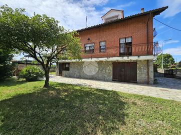 RONDISSONE: In posizione comoda all'ingresso dell'autostrada Torino - Milano; Villa libera su quattro lati con 800 mq. di giardino privato. La proprietà è stata ristrutturata nel 1990, dotata di una comoda e funzionale distribuzione degli ambienti presenti. La casa dispone di una metratura interna di 290 mq. distribuiti su tre livelli. Il piano terra è costituito da una comoda tavernetta con accesso alla cantina; un box auto doppio e una lavanderia. Tramite scala interna ed esterna si raggiunge il piano abitativo composto da ingresso su ampio salone con terrazzo di 22 mq. , cucina abitabile, tre camere, bagno e balcone. Mediante una seconda scala interna si accede al piano sottotetto, rifinito, dotato di ampia zona giorno con camino a legna e sfogo esterno sul balcone, camera, ripostiglio e bagno. Gli infissi sono in legno dotati di inferiate e tapparelle. Il riscaldamento dell'abitazione è a metano tramite radiatori e la presenza della canna fumaria consente l'utilizzo di stufe. Completa l'immobile un locale di deposito ubicato sul retro. L'intera proprietà si presenta in ottimo stato conservativo. L'ampia metratura interna e la distribuzione degli ambienti consentono ulteriori personalizzazioni ai fini di sfruttare al meglio tutti gli spazi presenti.
